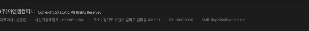 (주)이엔엠컴퍼니는 귀하에 대한 정보를 저장하고 수시로 찾아내는 쿠키(cookie)를 사용합니다. 쿠키는 웹사이트가 귀하의 컴퓨터 브라우저(넷스케이프, 인터넷 익스플로러 등)로 전송하는 소량의 정보입니다. 귀하께서 웹사이트에 접속을 하면 카폼의 컴퓨터는 귀하의 브라우저에 있는 쿠키의 내용을 읽고, 귀하의 추가정보를 귀하의 컴퓨터에서 찾아 접속에 따른 성명 등의 추가 입력 없이 서비스를 제공할 수 있습니다. 쿠키는 귀하의 컴퓨터는 식별하지만 귀하를 개인적으로 식별하지는 않습니다. 또한 귀하는 쿠키에 대한 선택권이 있습니다. 웹브라우저 상단의 도구 > 인터넷옵션 탭(option tab)에서 모든 쿠키를 다 받아들이거나, 쿠키가 설치될 때 통지를 보내도록 하거나, 아니면 모든 쿠키를 거부할 수 있는 선택권을 가질 수 있습니다.